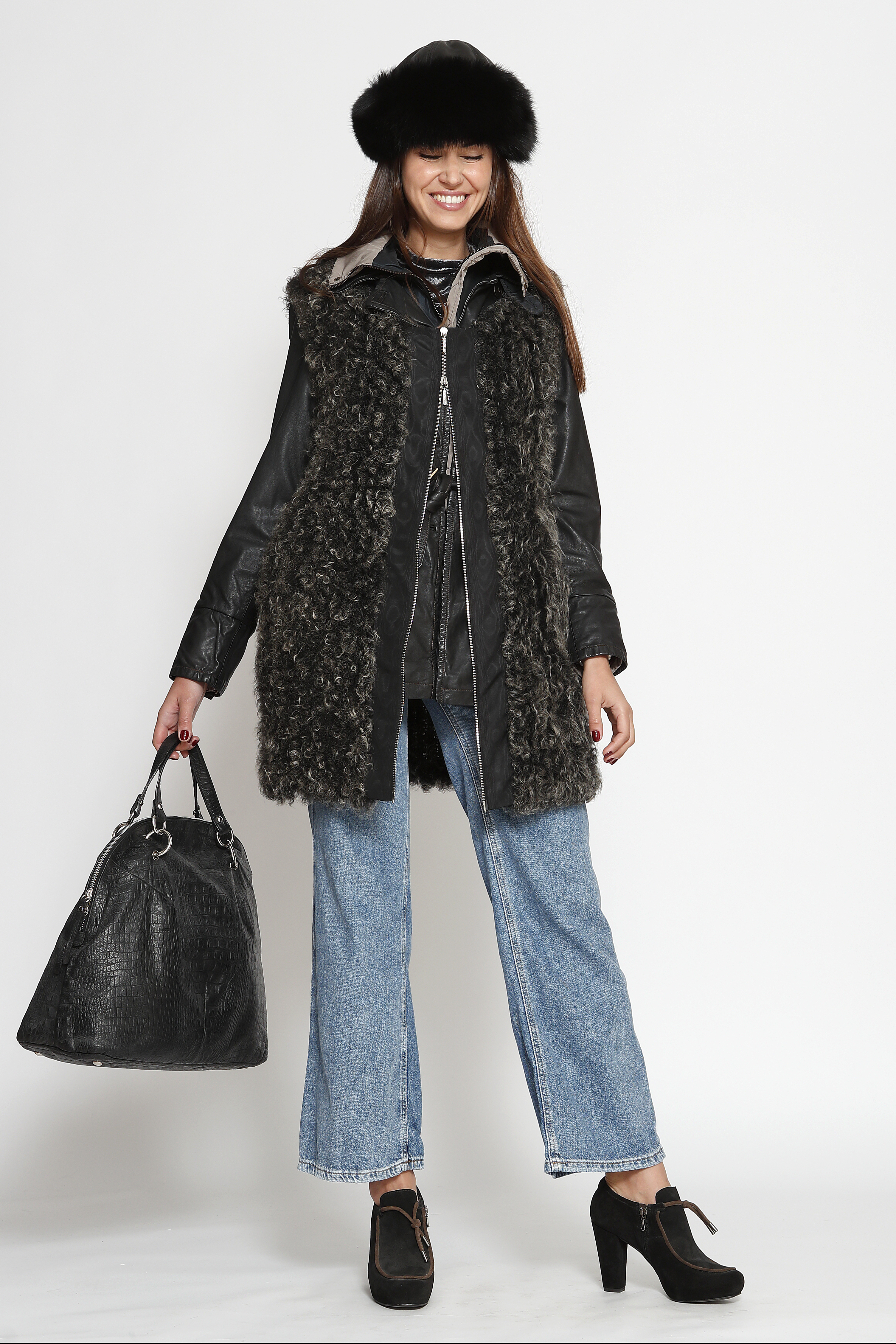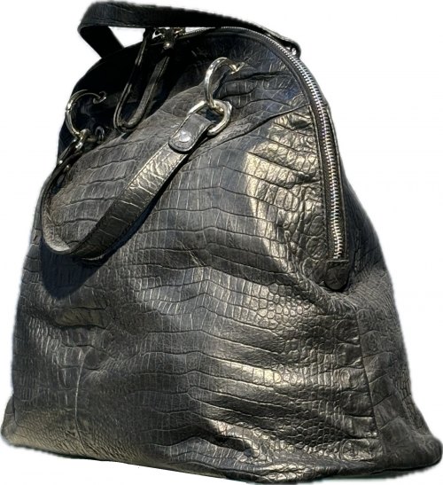 Bolso Piel Labrado Cocodrilo Negro